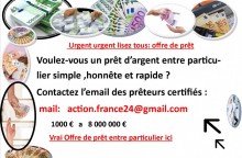 OFFRE DE PRÊT ENTRE PARTICULIER en Belgique et france europe ? -Avez-vous besoin d'un prêt sérieux et fiable de 1000? a 80 000 000? ?contactez mail : gerardserieux@gmail.com -Bonjour a tous